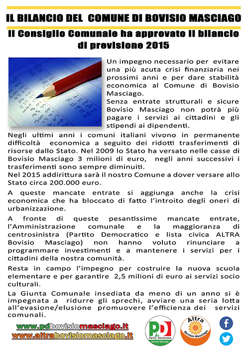 Il Consiglio Comunale ha approvato il Bilancio di previsione 2015.