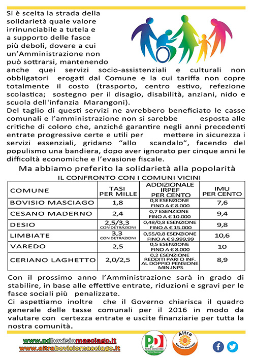 Un impegno necessario per evitare una più acuta crisi finanziaria nei prossimi anni e per dare stabilità economica al Comune di Bovisio Masciago.